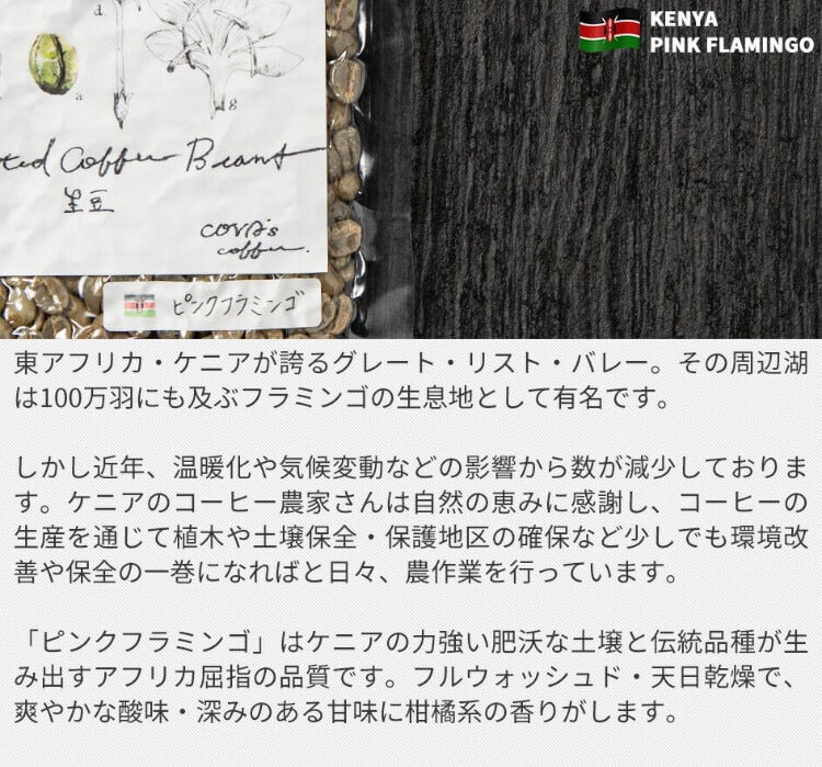 ケニアの力強い肥沃な土壌と伝統品種が産みだすアフリカ屈指の品質をどうぞご賞味ください。